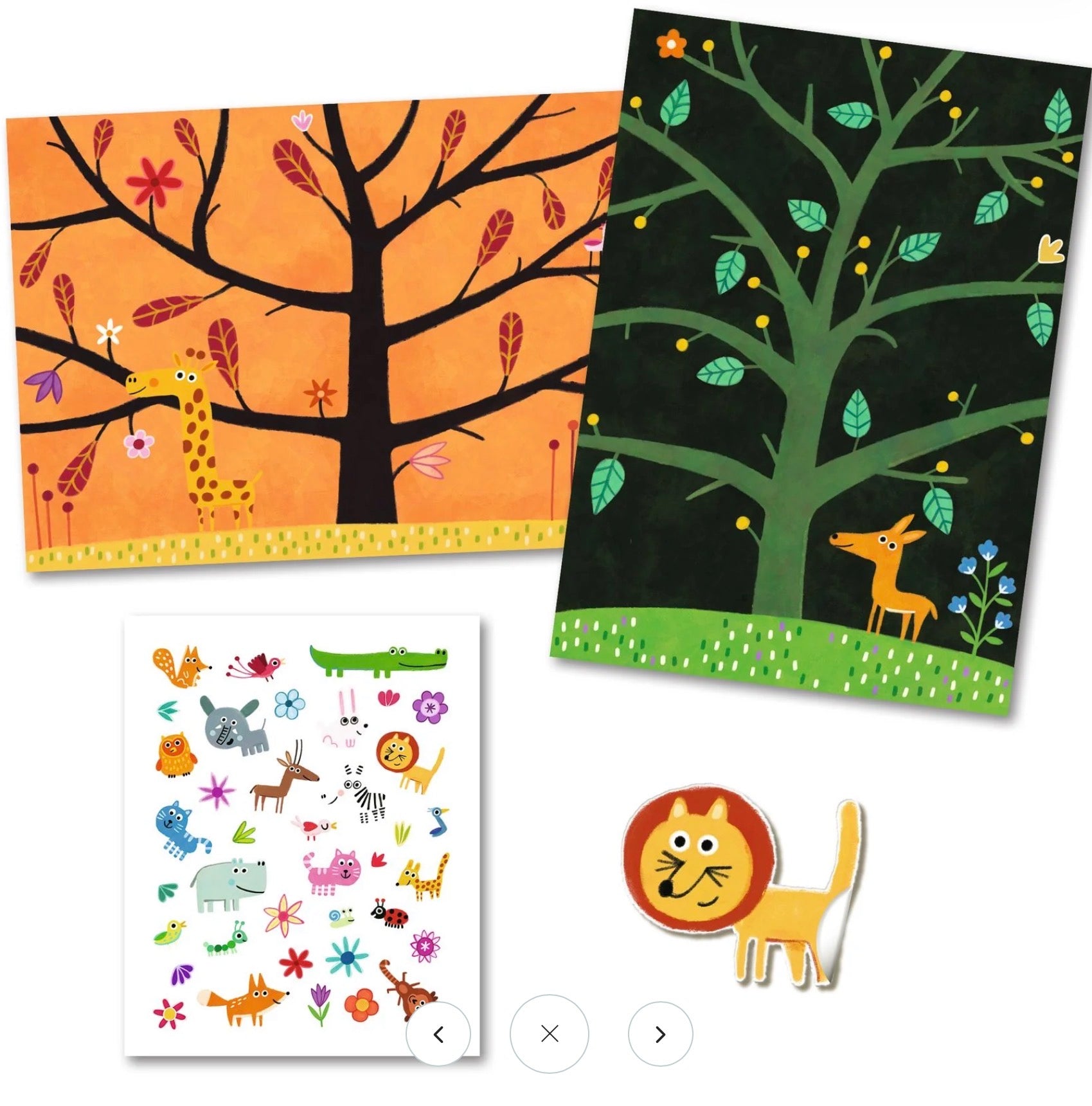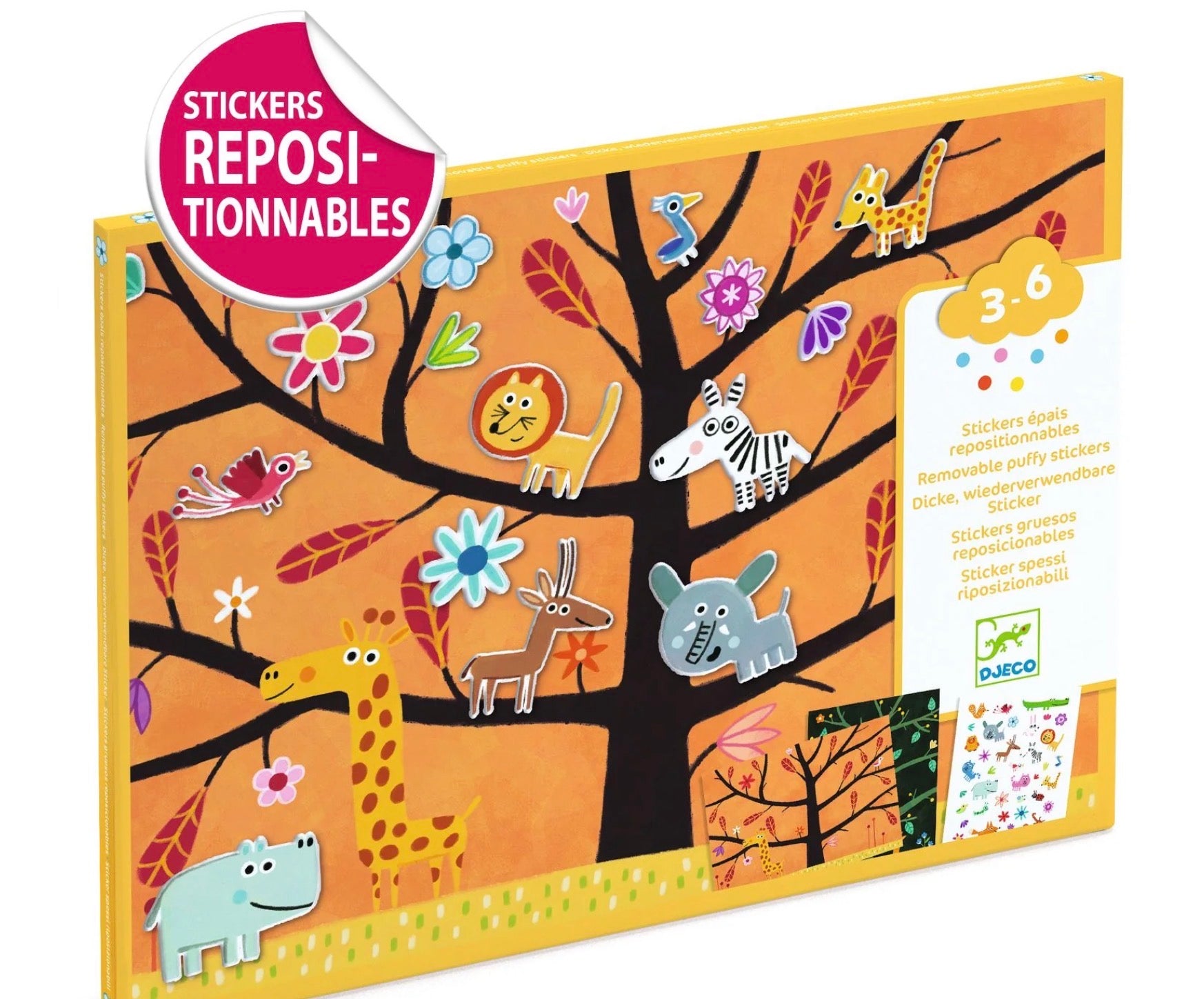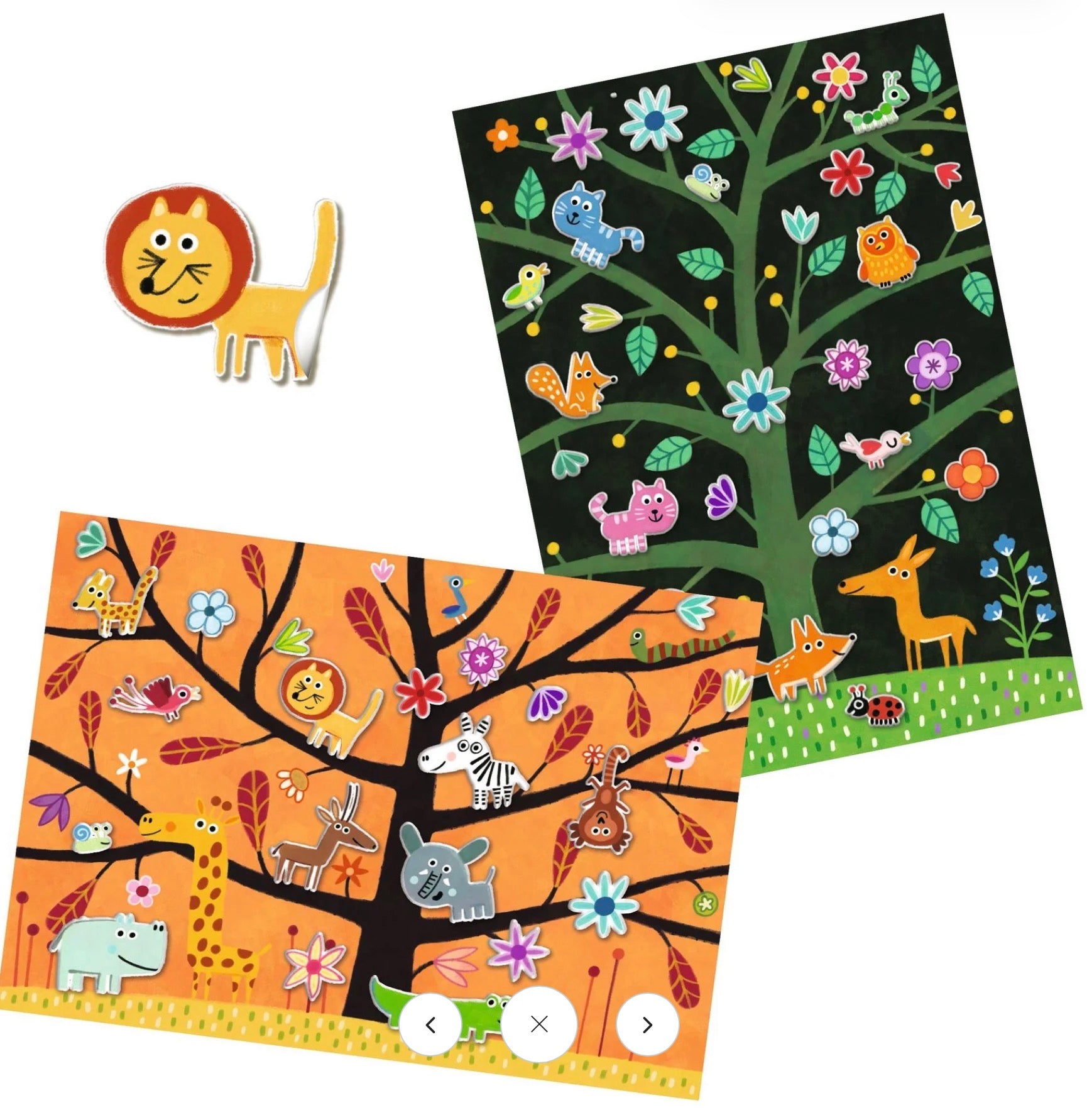 Let your child's imagination soar with the Tree Climb 30 pc Reusable Puffy Stickers set! This big arts and crafts folder allows children to create original and quirky scenes with animals playing off-ground tag. Featuring two large illustrated backgrounds, one in the savannah and one in the forest, kids can create fun and adventurous scenes using more than 30 reusable puffy stickers. The set includes a fun and quirky theme with cats in captivating backgrounds, stimulating children's imaginations. The thick puffy stickers are pleasant to use and specially designed for little hands, allowing children to move them around to create different scenes every time. This activity combines creativity and free play, letting children dream up stories while having fun.