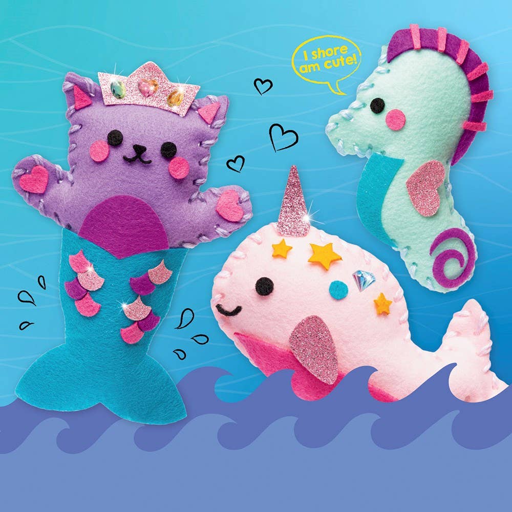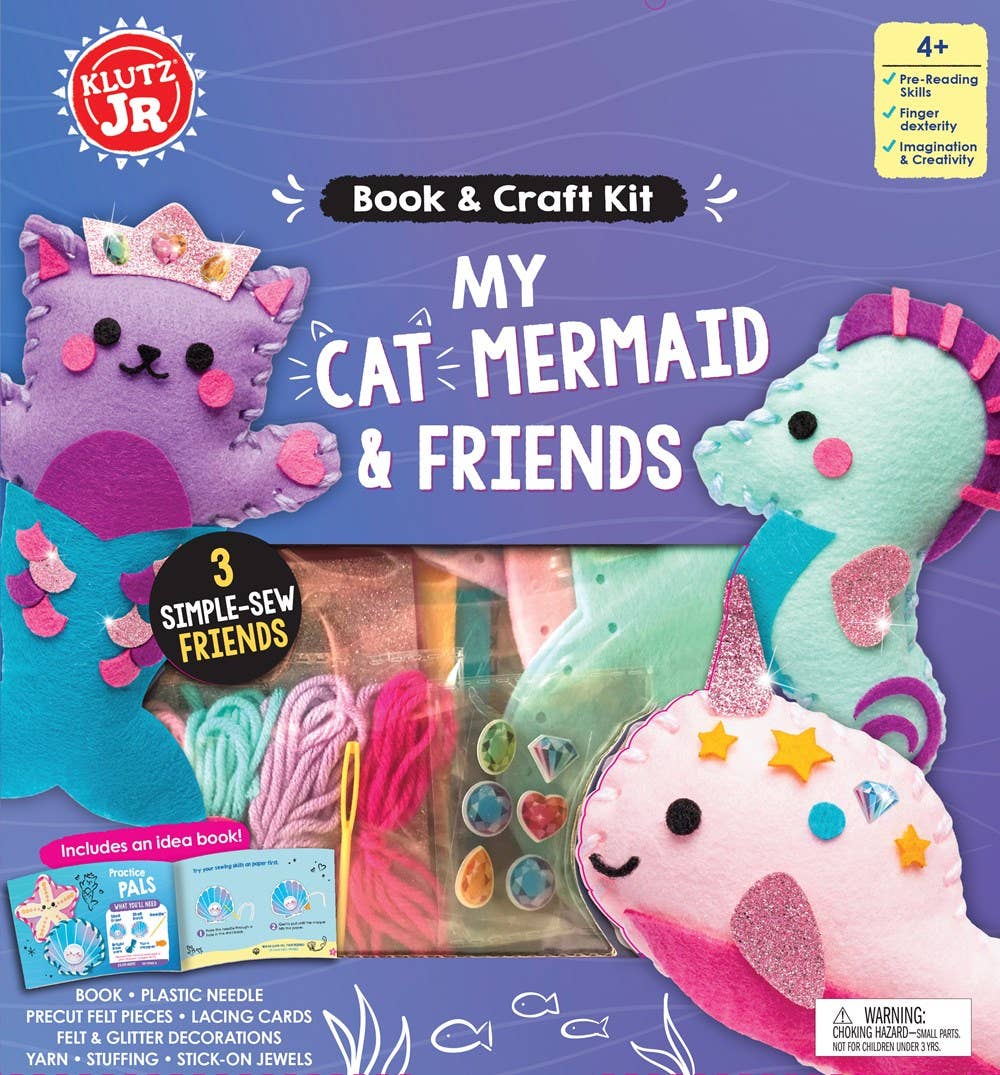 Simple sewing goes under the sea! Build fine motor skills and learn to sew with a cat-tastic mermaid and her sweet sea critter friends. Start with simple lacing cards featuring a seashell and sea star, before you dive into the three felt projects: seahorse, narwhal, and a cute cat mermaid. Get creative by decorating your undersea friends with felt stickers and glittery embellishments. (Because every mermaid needs a crown!) Created by:Editors of Klutz Imprint: Klutz Publication Date: 02/01/2021