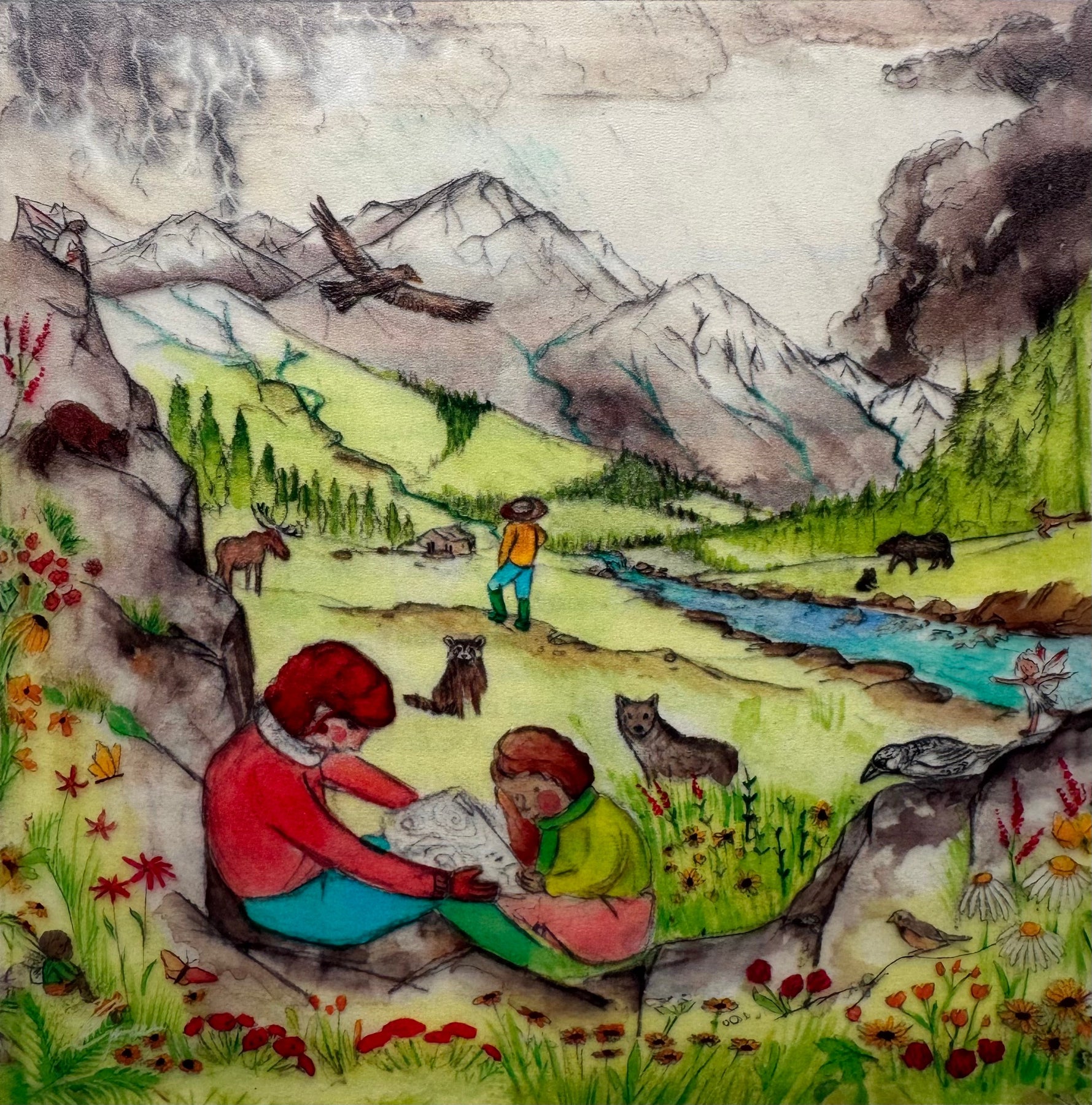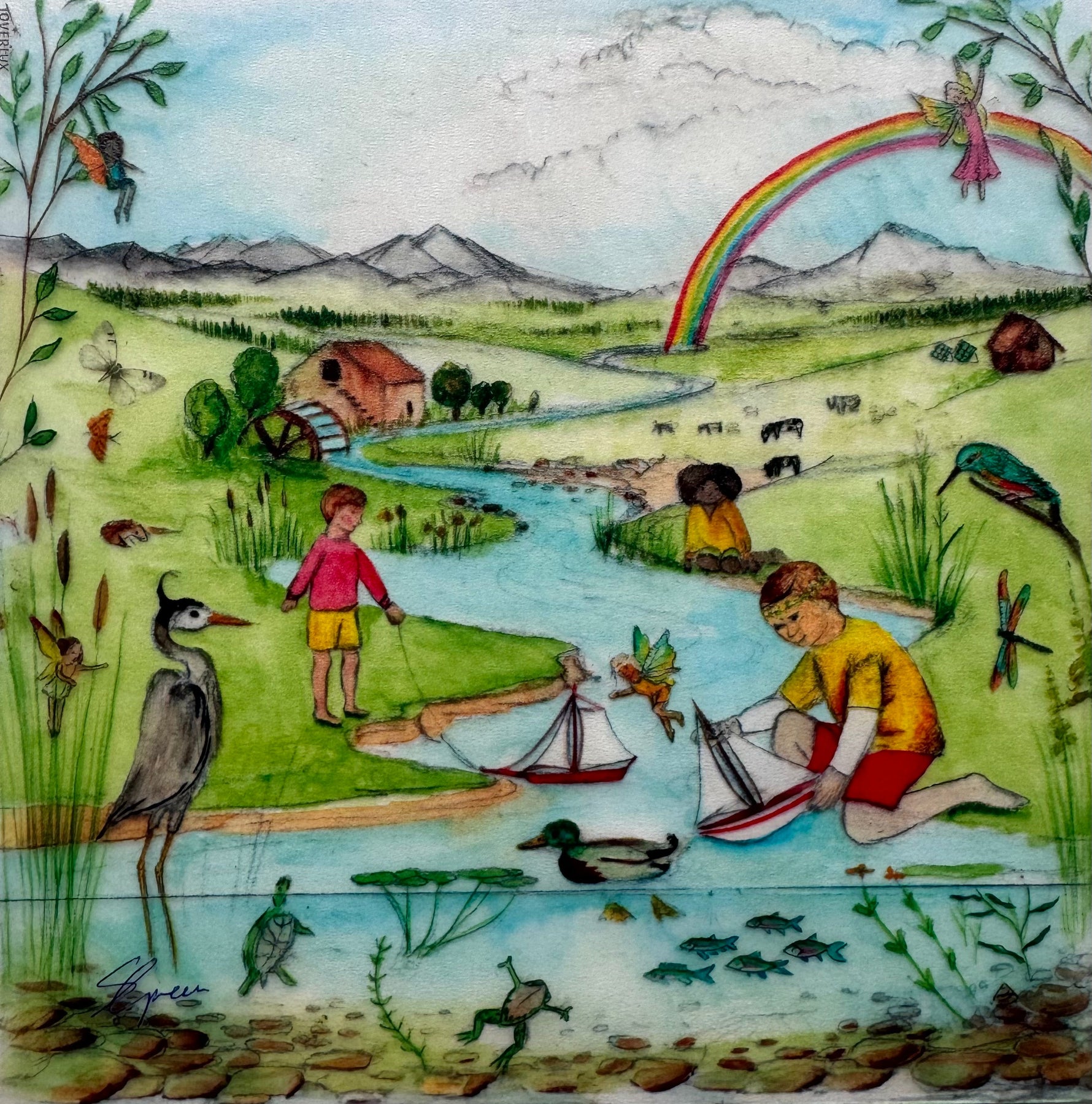 Playfully learn about water cycles: Mountains, Rivers, the Estuary, Seaside, and different Cloud Formations.