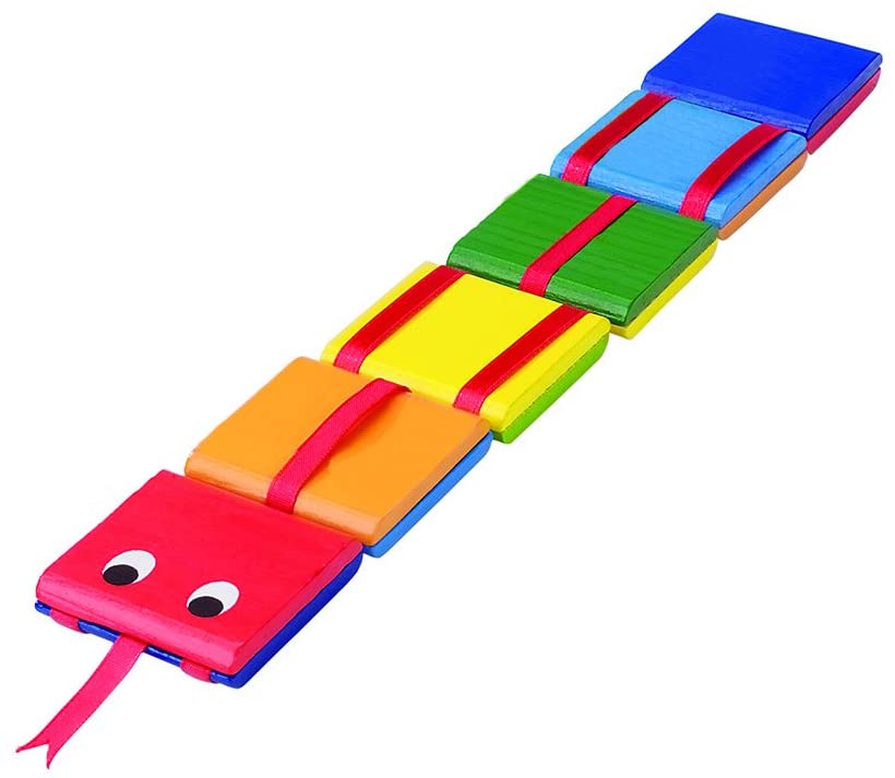 How does it work? If you fold the head with your thumb and index finger, a little tile rattles down the snake. Enhances motor skills and logical thinking.
