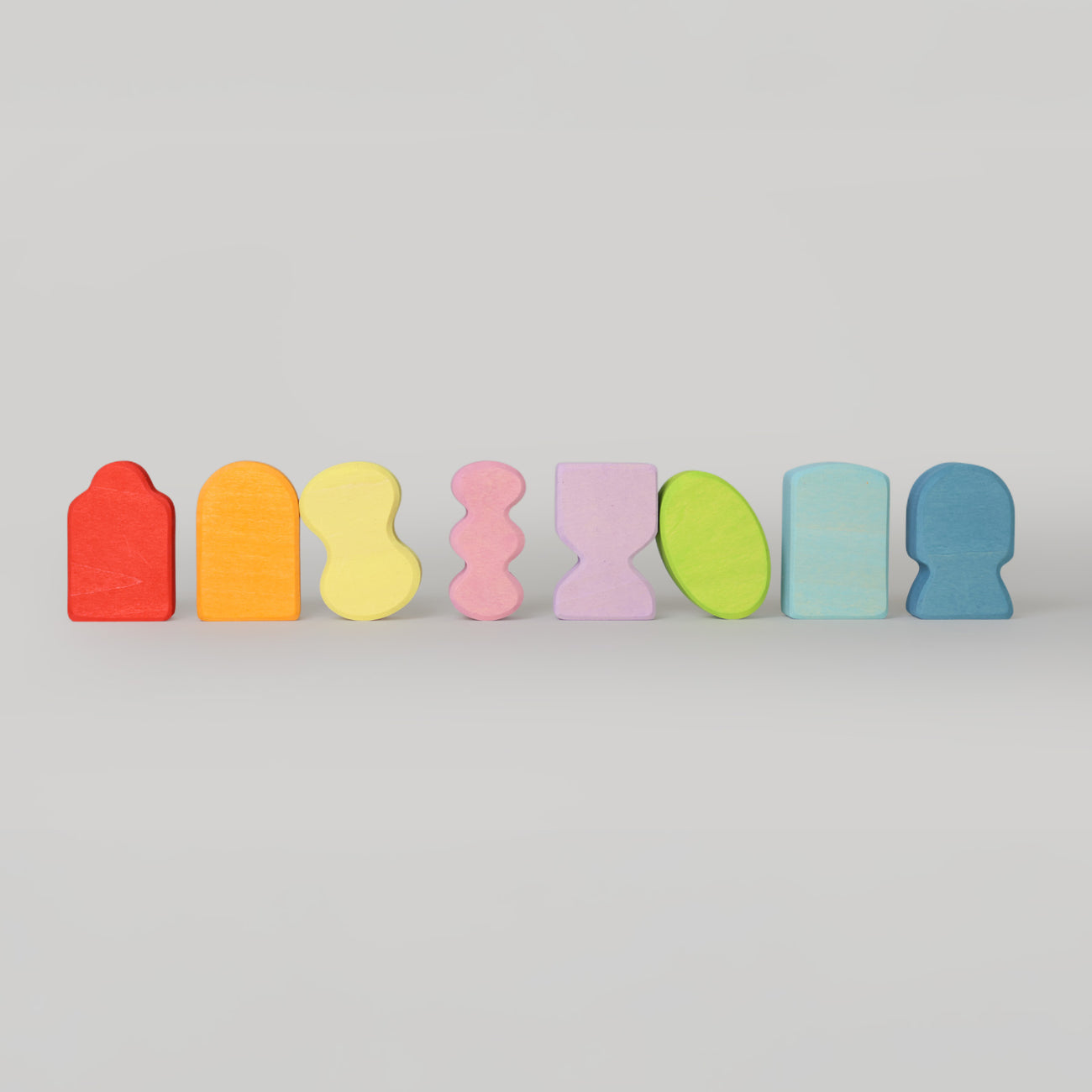 Windows give us a view of the world. Our windows in various colours and shapes are essential building elements for all types of buildings. They bring light into dark rooms and enliven monotonous facades. The Building Set is a first shape puzzle to introduce young children to matching shapes and color harmonies.