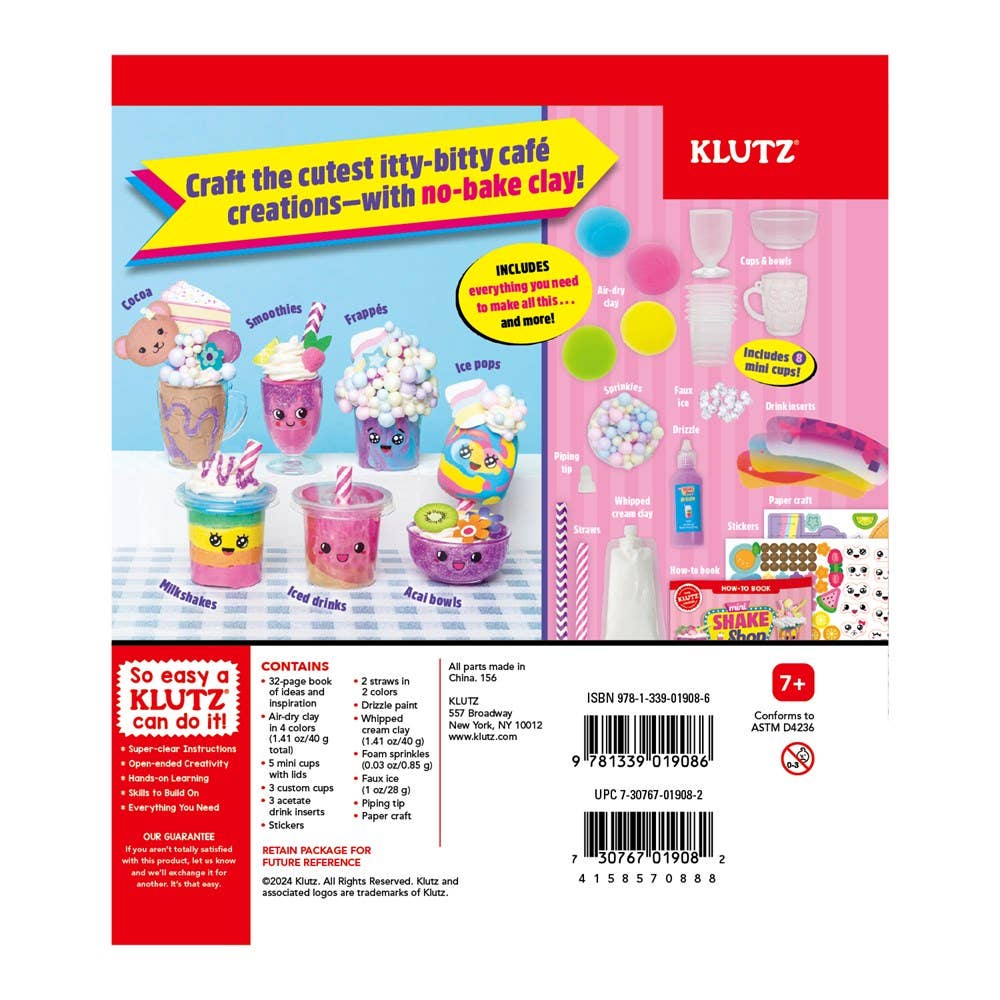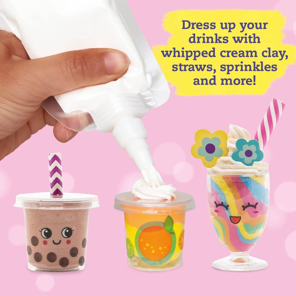 Use air-dry clay to make mini shakes, boba tea, and other adorable treats!Shake things up! From trendy boba tea to over-the-top milkshakes, this kit includes everything you need to make non-edible versions of your favorite slurpable drinks. Custom molded cups, clay, stickers, straws, and realistic-looking squeezable "whipped cream clay" help you craft cute food with faces.
