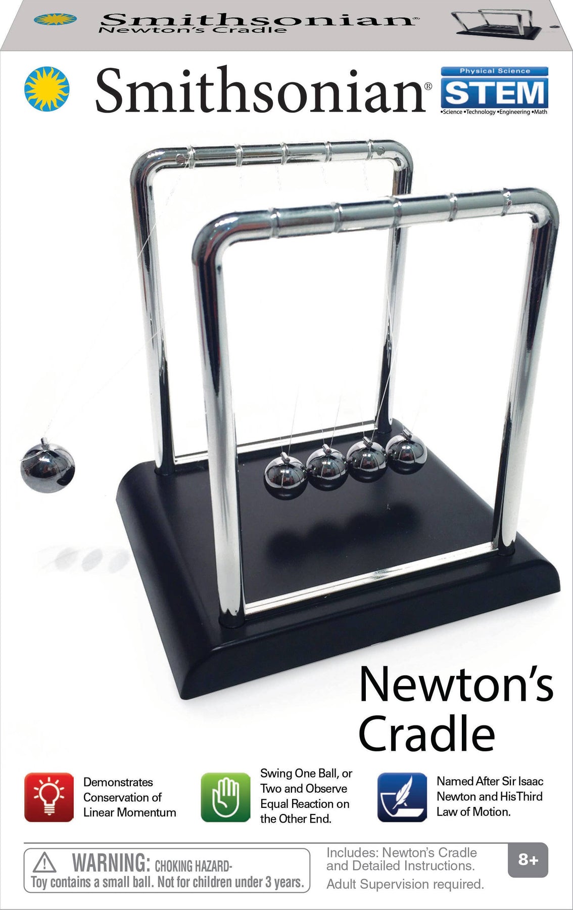Newton’s Cradle lets you witness how for every action there is an opposite and equal reaction. Perform various experiments to observe the law in action. STEM content includes biographical information on Newton and explains concepts including matter, mass, momentum, inertia, force, centripetal force, and Newton’s three laws of motion.