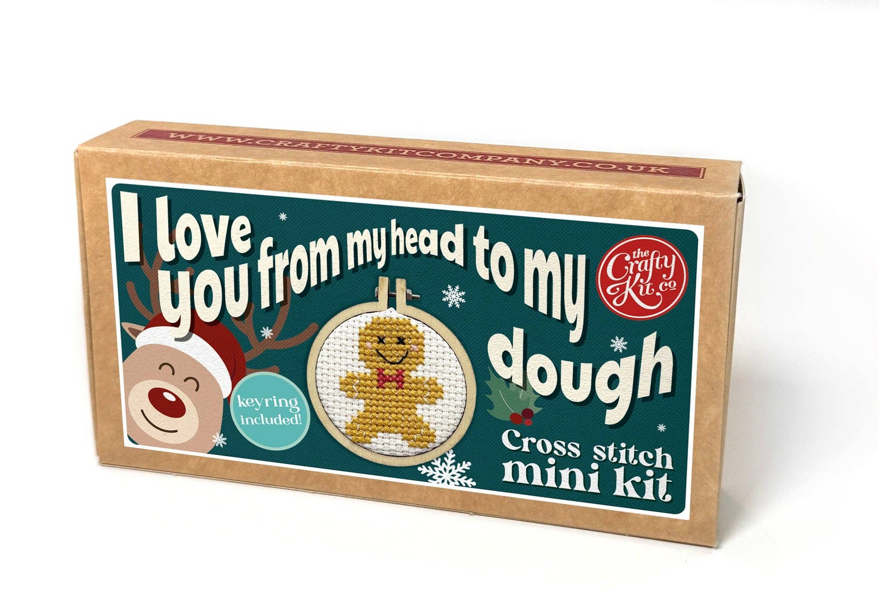 I love you from my head to my dough Mini Matchbox Christmas Cross Stitch Kit. Begin your crafting adventure with our new Mini Matchbox Cross Stitch Kit. Each kit is neatly packaged in a compact matchbox, perfect for gifting to friends and family on special occasions. Designed for crafters of all skill levels, these kits include everything you need to complete a lovely 2" design. With high-quality materials and straightforward, easy-to-follow instructions, you can effortlessly bring each pattern to life. Whether you're creating a personal keepsake or a unique gift, these mini projects are sure to bring a wee bit of joy and a touch of creativity to anyone's day!
