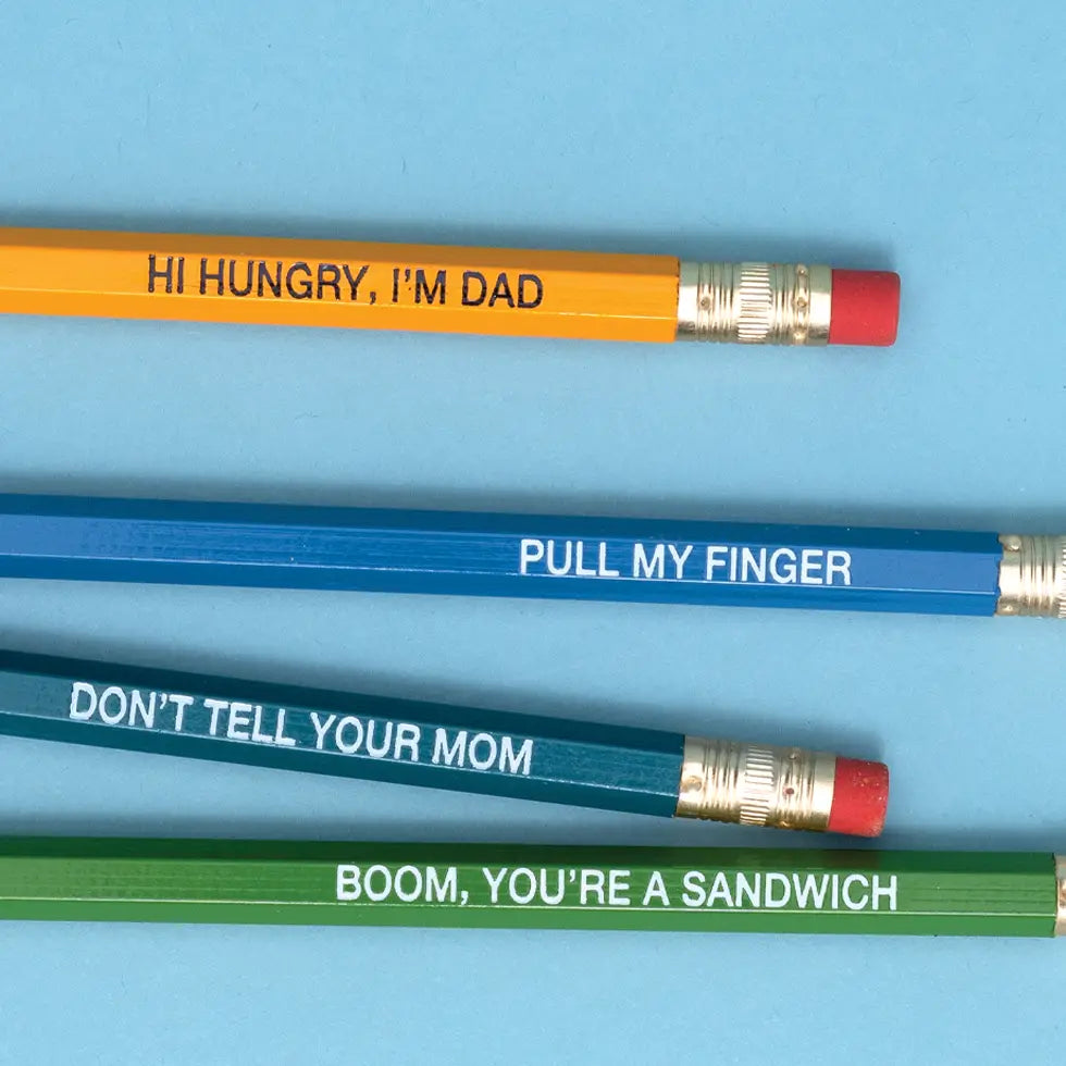 SO FUNNY, I FORGOT TO LAUGH. Where in the heck are you and the other dads getting these so-called “jokes” from anyway, Corny Dads Quarterly? I mean, come on now… Does every conversation need a fart reference? Are you all a hive mind? I’m kidding, Dad. I totally respect the dad comedy. You’ve always said that money doesn’t grow on trees, but maybe dad jokes do! Dad Jokes Pencils 8-pack Standard No. 2 Pencils © 2021 Whiskey River Soap Co.