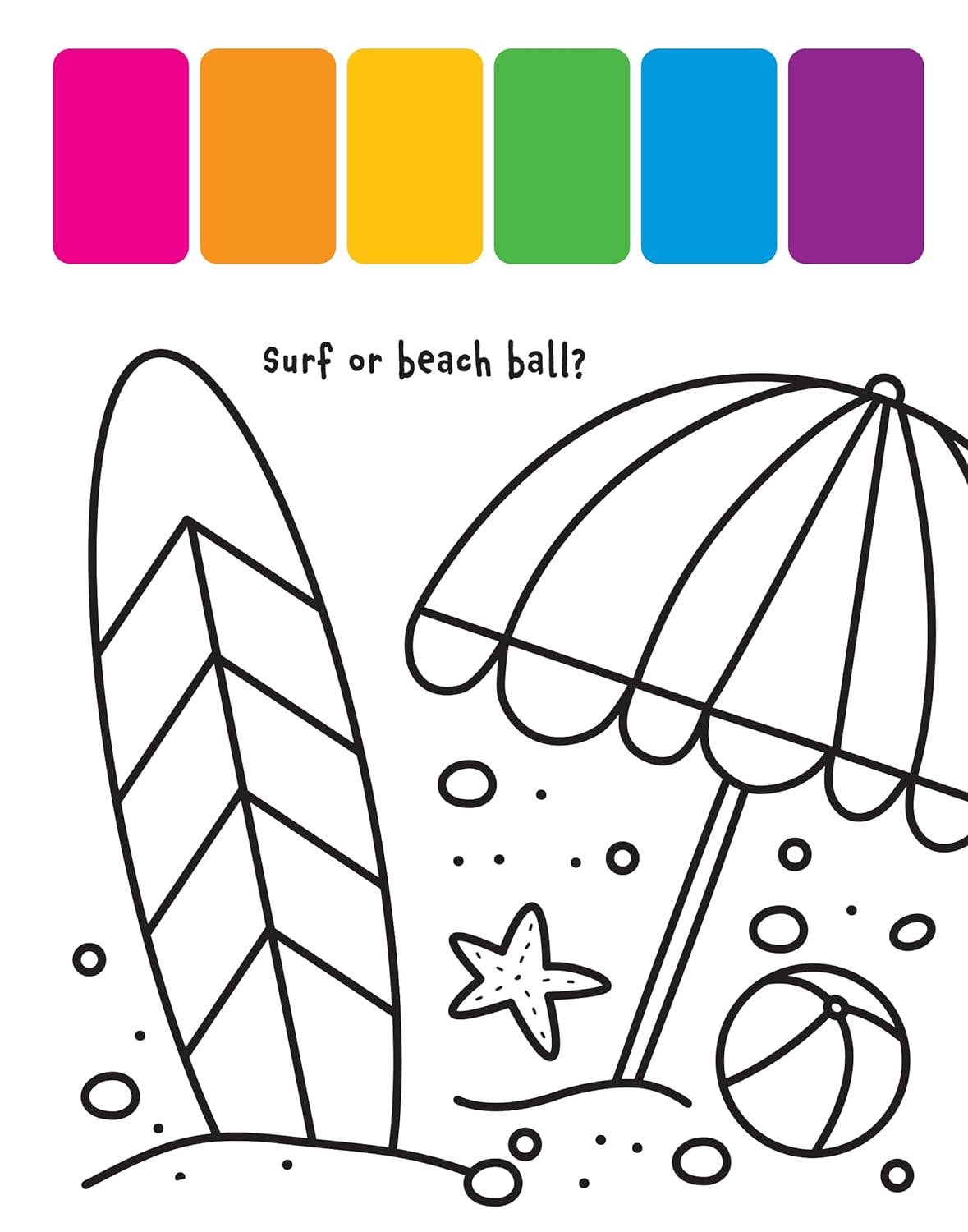 All kids need to do to begin his or her watercolor masterpiece is add a little water to one of the 6 colors found on the palette located on each page and begin painting.