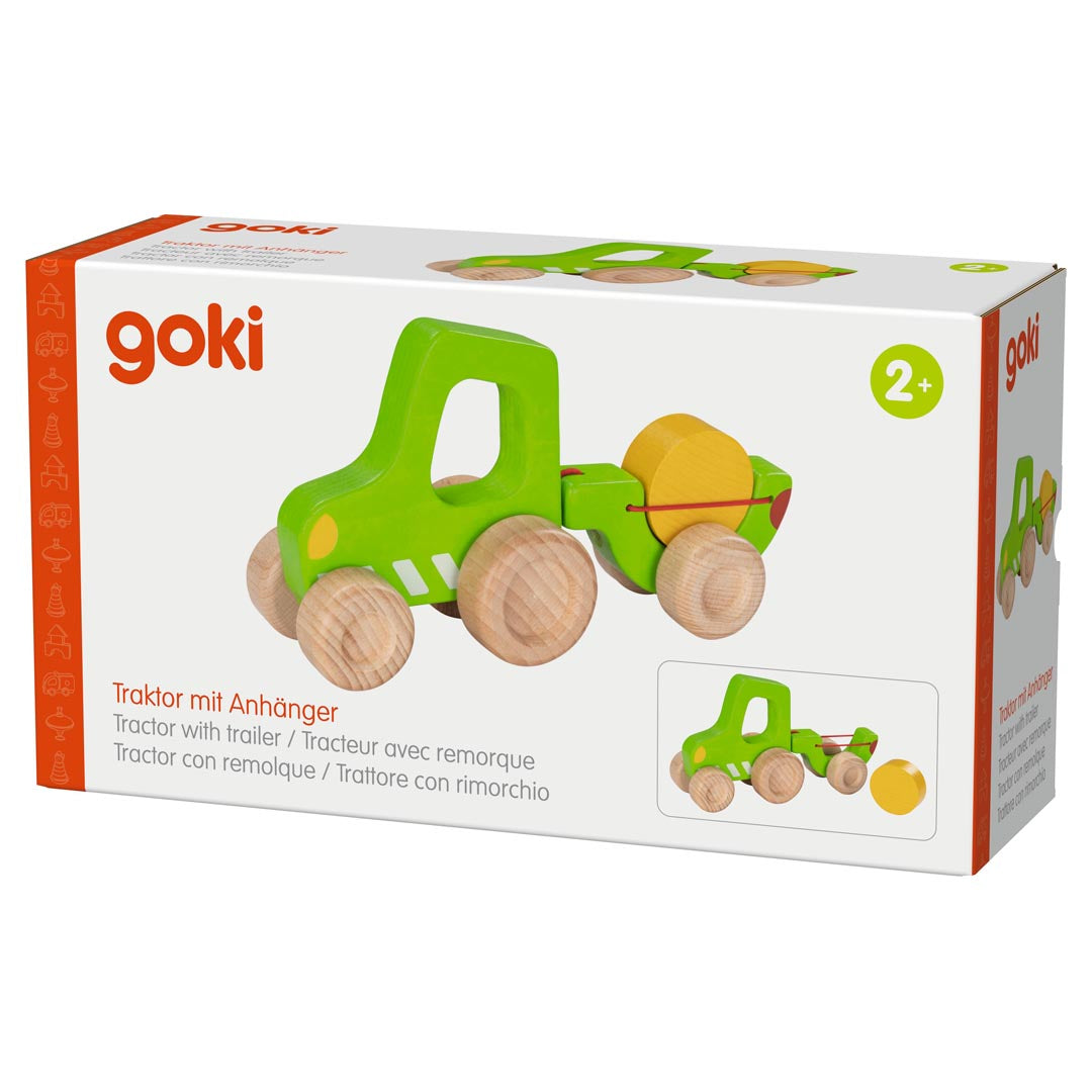Eco-Friendly Wooden Tractor Toy with Trailer Introduce children to farm life with this charming wooden tractor and trailer set. Crafted from sustainable European wood and painted with non-toxic, water-based colors, this toy embodies eco-conscious play. The ergonomic design fits perfectly in small hands, promoting fine motor skills and imaginative play. Features: - Vibrant green tractor with natural wood wheels - Movable yellow hay bale - Durable construction for long-lasting enjoyment - Suitable for ages 2 years and up Perfect for: - Developing hand-eye coordination - Encouraging role-play and storytelling - Enhancing problem-solving skills - Teaching basic farming concepts This versatile toy appeals to farm enthusiasts and curious minds alike. Its quality craftsmanship and educational value make it an excellent addition to any toy collection, whether at home or in educational settings.