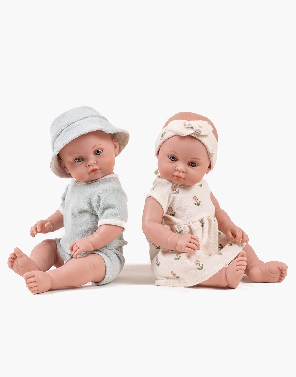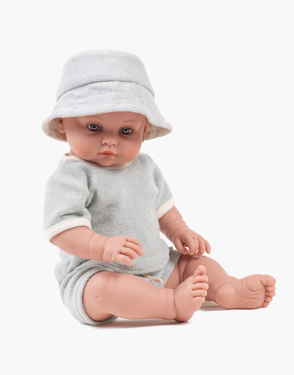 3-piece set “Sun” with t-shirt, Vito shorts and terry fleece Bob hat for Minikane Bambinis 47cm dolls and baby dolls.