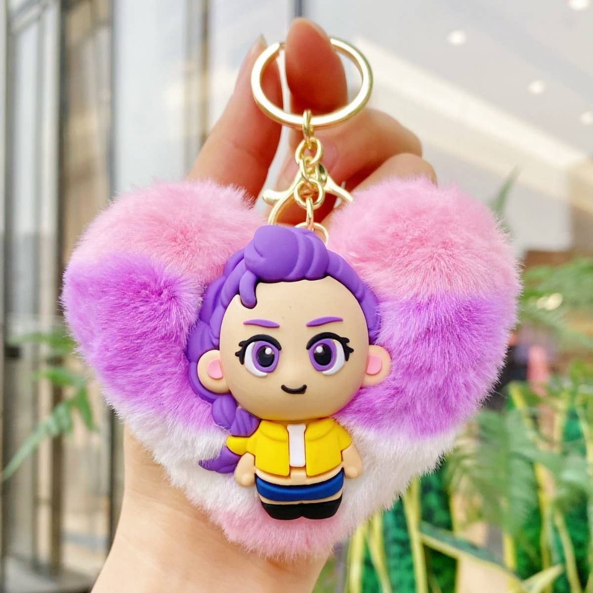 Show your fandom in a cute way with this K-Pop Demon Hunters Heart-Shaped Plush Keychain Bag Charm. Made from soft, high-quality plush material, this keychain is lightweight and durable, perfect for daily use on bags, backpacks, or keys. A must-have collectible for fans and a fun gift for K-Pop enthusiasts.