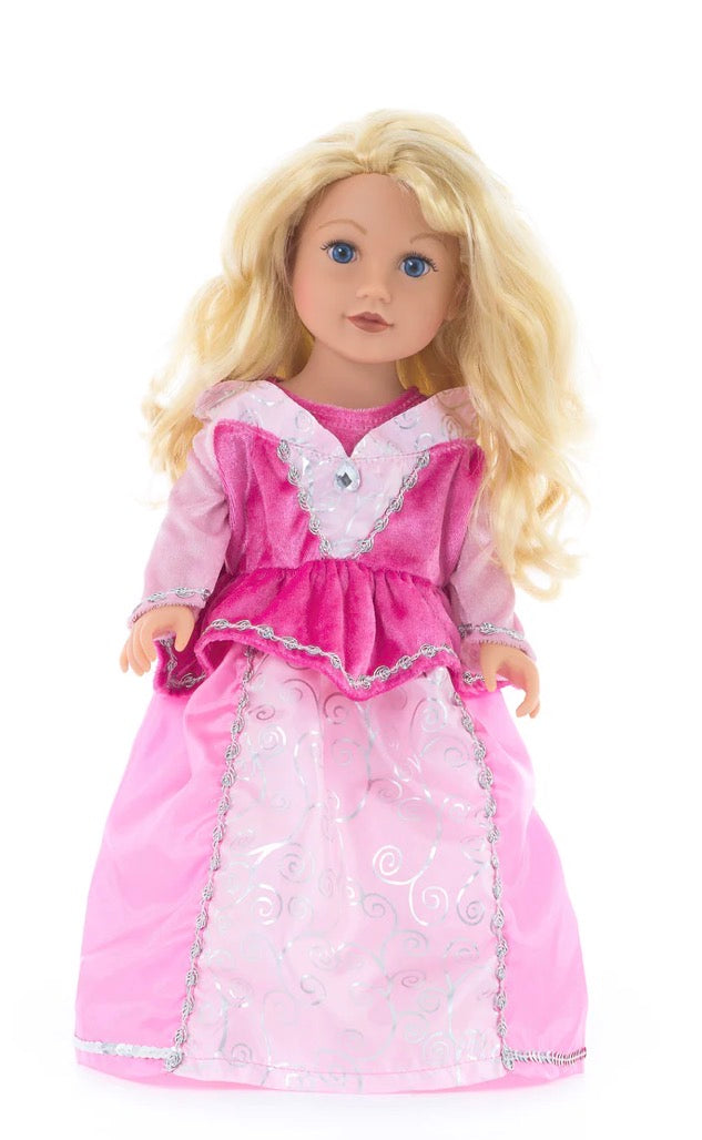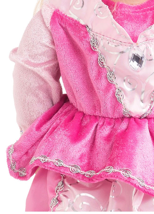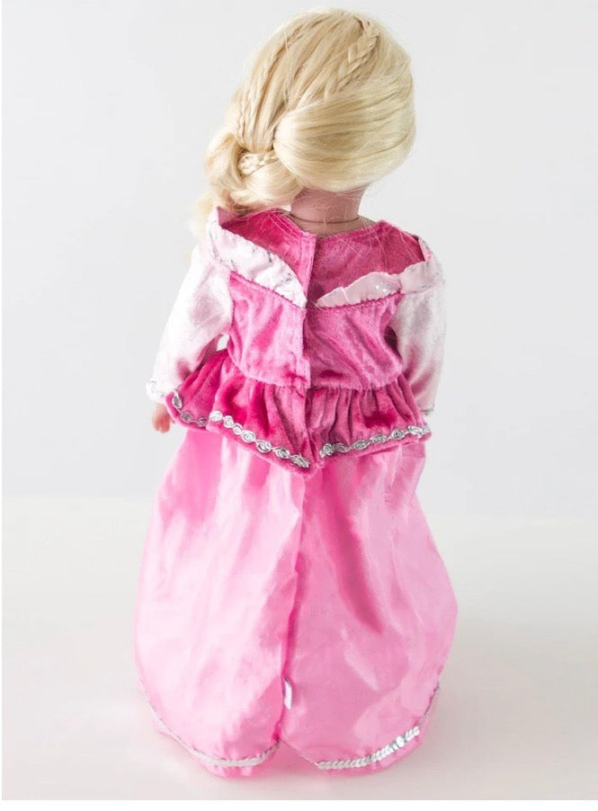 Our Sleeping Beauty doll dress will transform your child’s doll into an enchanting princess. Now, the two of them will be able to go on imaginary adventures filled with fairies, dragons, charming princes and princesses, and of course, Sleeping Beauty.