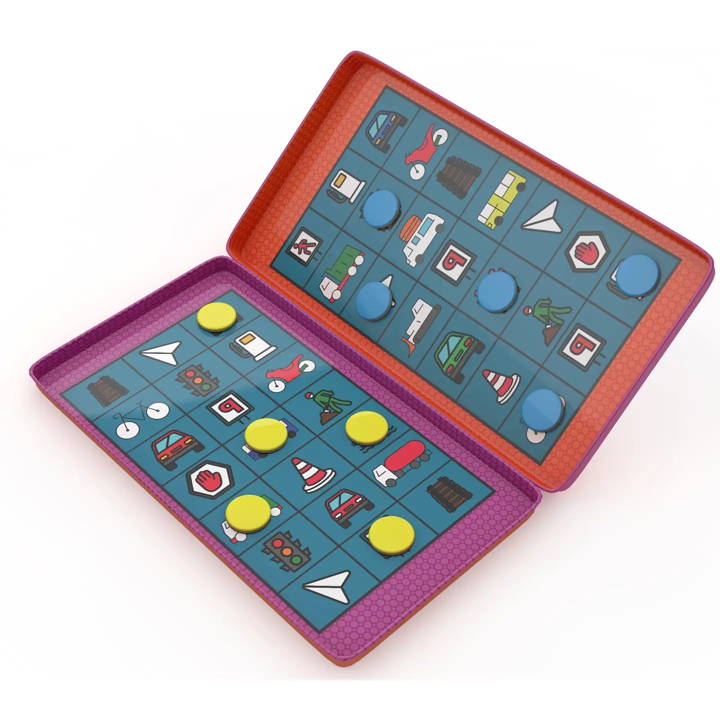 Magnetic road trip bingo game: The Purple Cow –road trip bingo is a magnetic version of the classic bingo game. Whilst sitting in the car, this 2 players game is all about watching out the window and identifying the items in your board – first one to complete a column or 2 rows – is the winner! Play road trip bingo on the road and even during a bumpy ride.