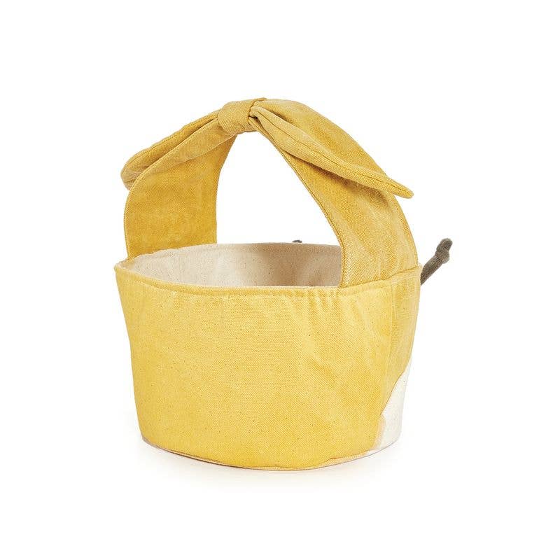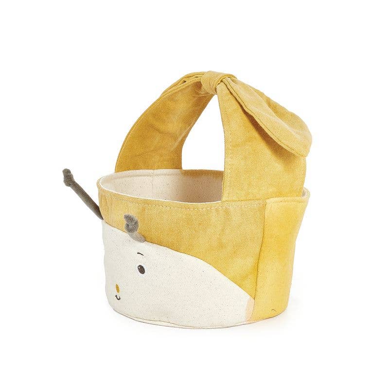 FEATURES: Bucket dimensions 4.5" x 7.5" Wide Delightful Embroidery 100% Cotton Machine wash and dry low The perfect soft bucket to present the most perfectly delightful gift. Soft Tangerine and Cream canvas with a sweet, embroidered Bug face and floppy knotted wing handle. This bucket is perfect for an Easter basket, toy bin, and room decor!