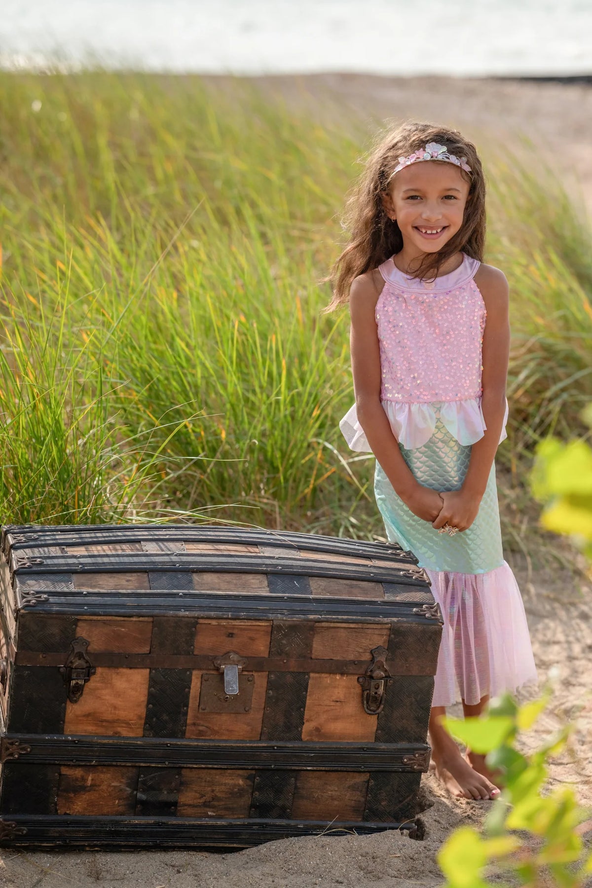 Crown your little mermaid with the magic of the sea with the Boutique Ocean Jewel Tiara! Each shimmering tiara ia adorned with sparkling jewels that capture the beauty of the ocean. Perfect for turning any moment into a royal affair, these tiaras add a touch of enchantment to dress-up fun and special occasions alike.