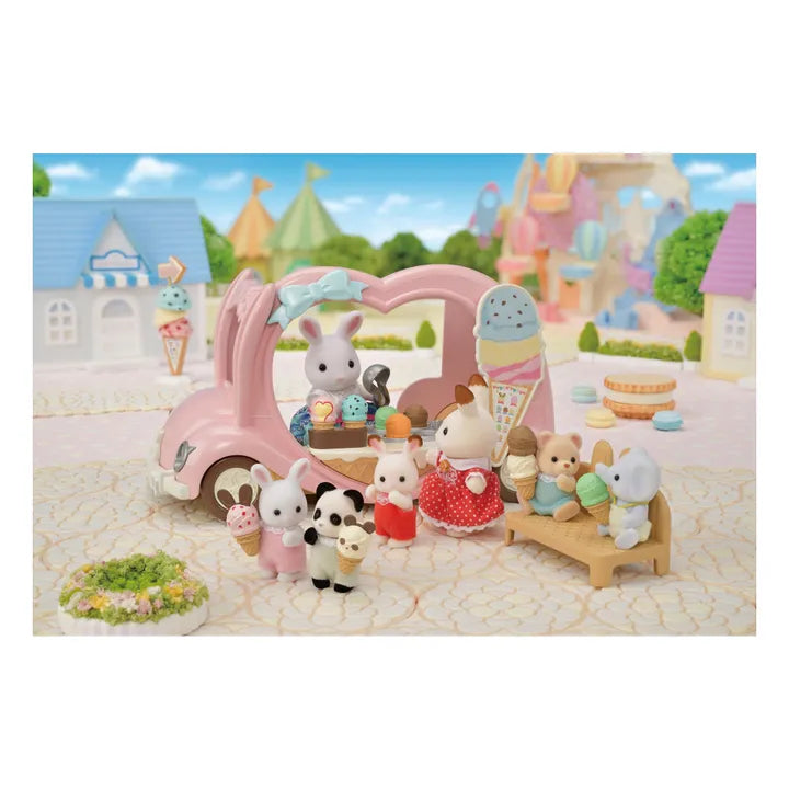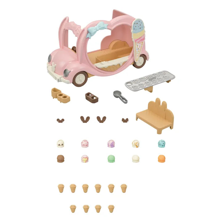 • The ice-cream truck contains over 30 ice creams and accessories. The cones can be held by the figurines. The driver's seat can be removed and used as a bench. The shop window can be turned over and used as a seat.