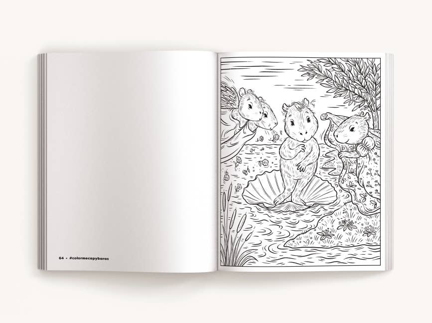 Unwind and express your creativity with the fun designs in Color Me Capybaras. Who doesn't love capybaras? This hilarious collection of coloring pages is something you never knew you needed until now. Take advantage of the meditative benefits of coloring with capybaras driving cars, sunbathing on the beach, listening to tunes, and living their best lives. These detailed illustrations allow you to practice mindfulness and will keep you busy for hours. Color Me Capybaras includes: 50 coloring pages to help you de-stress Designs suitable for all skill levels, with a range of selections for beginners and experienced artists One-sided pages so your art doesn't bleed through to the other side Anxiety-reducing benefits to lift your mood Whether you need a calming atmosphere, want to relax at the end of the day, are trying a new hobby, or just love coloring, there is something here for everyone. Forget your worries as you explore these creative scenes.