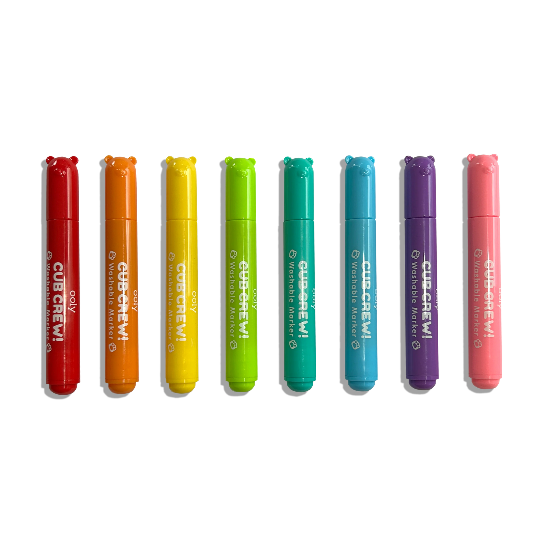 Let your creativity run wild with the Cub Crew Washable Markers! This set of 8 cute markers features bold, brilliant colors that make coloring and drawing a joy for artists of all ages. Designed for kids, teens, and even adults, these washable markers glide smoothly across the page, making them perfect for everything from doodles to detailed artwork.