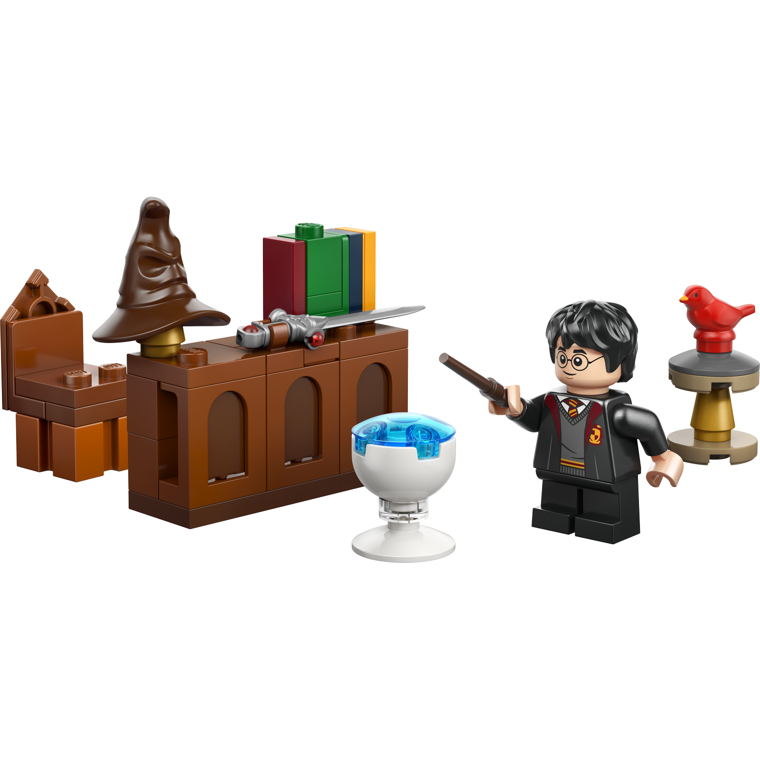 Play out magical scenes in Dumbledore’s office with Harry Potter™, the young Fawkes™ and accessories including the Sorting Hat™, Pensieve™ and the Sword of Gryffindor™.