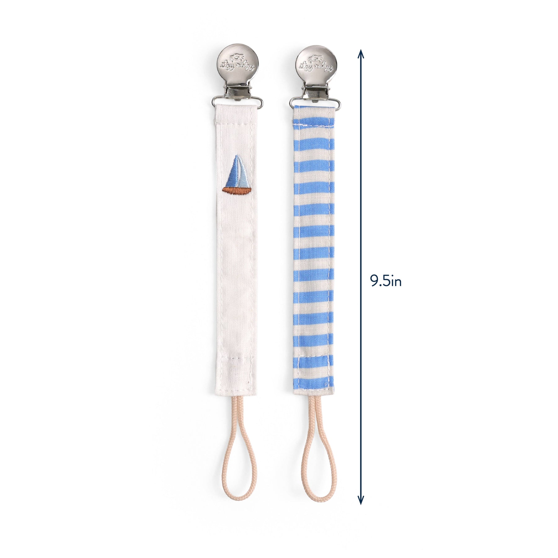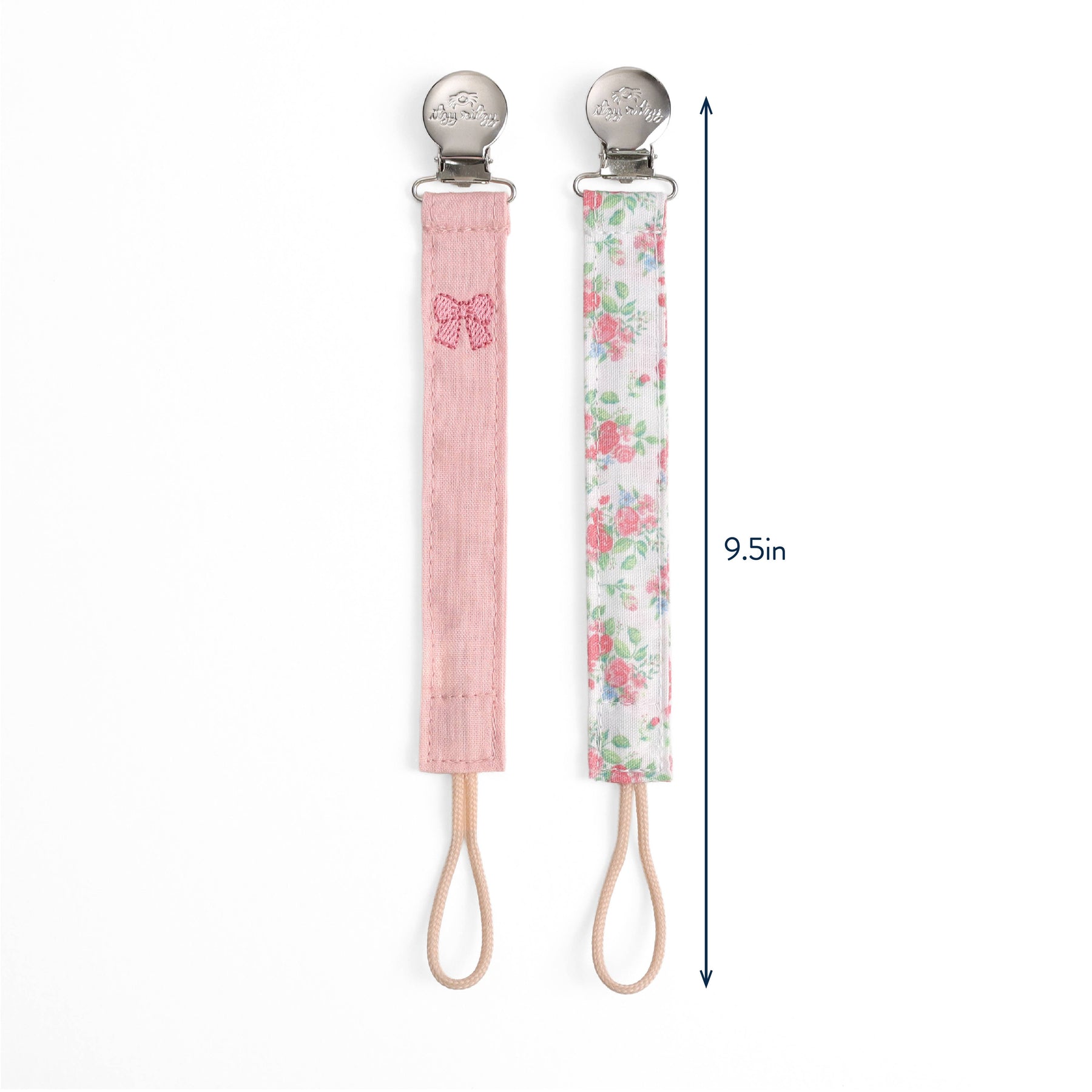 Holds pacis close! Say goodbye to lost pacifiers! The Itzy Clip pacifier strap is thoughtfully tailored to gently attach to baby’s clothing while keeping pacifiers easily in view, clean, and always accessible. With an elevated fabric design and signature hardware, these pacifier straps match and mingle with all of baby’s adorable outfits. Features: - 2-pack pacifier straps with universal attachment clip - Loop works for pacifiers, small toys, and teethers - Attaches to all fabrics safely and without damage