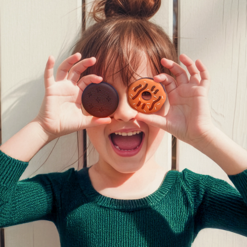Coconut Caramel and Trefoils™ double as puzzle erasers—take apart and put back together