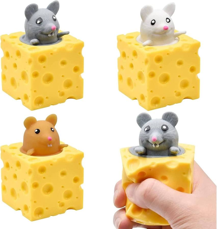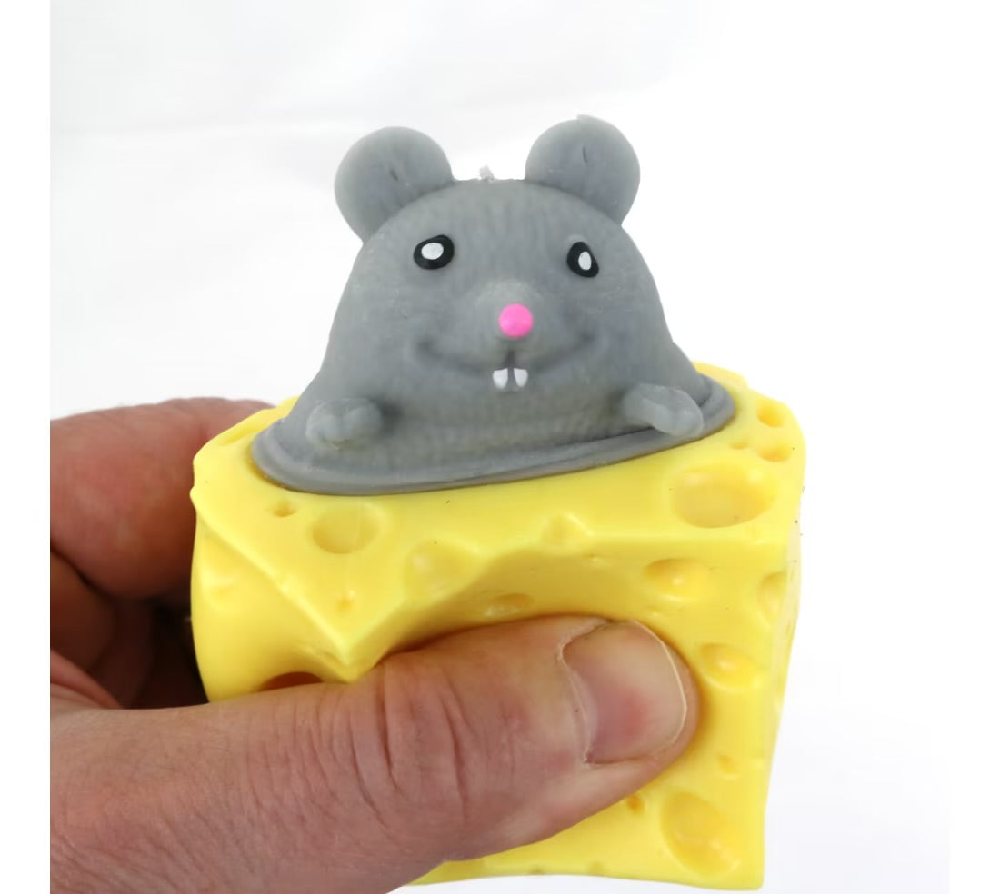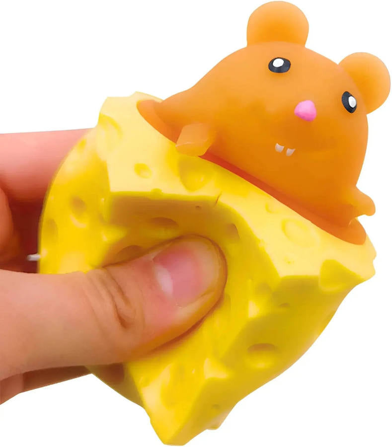 Squeezable stress reliever features a pop up squishy mouse