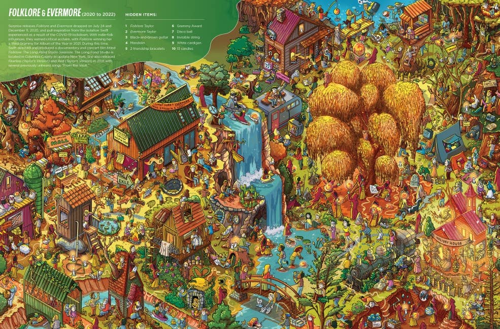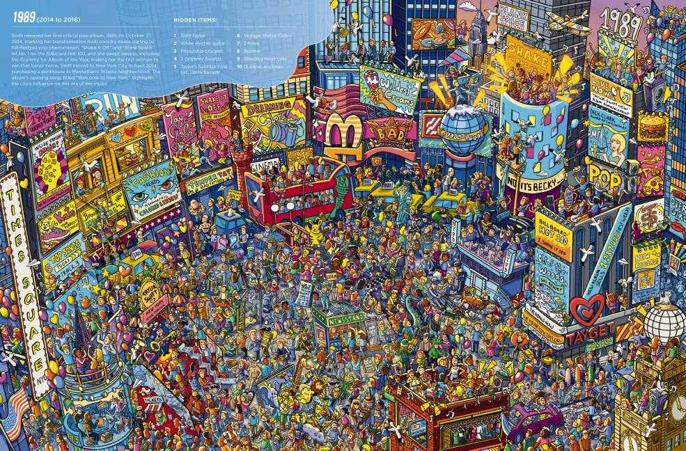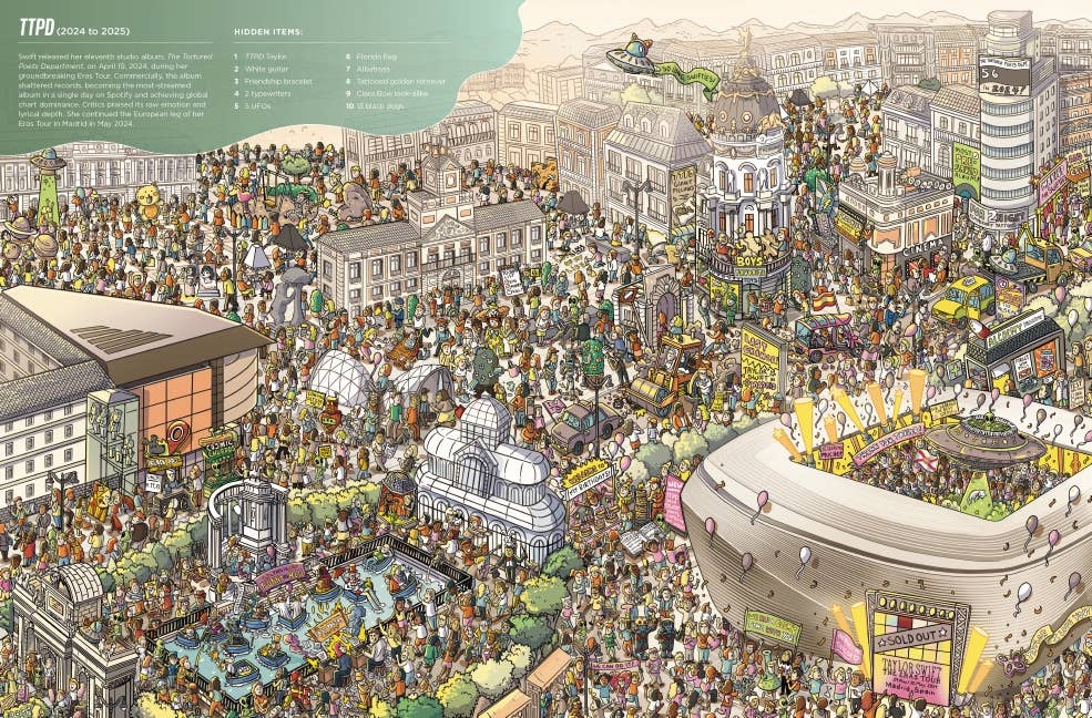 This one-of-a-kind biography takes you on a visual exploration of Taylor Swift’s groundbreaking career, celebrating every album era, iconic outfit, and unforgettable moment. From singing “Tim McGraw” at the start of it all to her Midnights confessionals, this book is packed with Easter eggs that only her most loyal fans will uncover. Dive into masterfully illustrated spreads, each inspired by a pivotal era in Taylor’s life. Seek her out in the snake-adorned chaos of Reputation, find hidden treasures among the glitter-dusted allure of 1989, and follow a trail of butterflies and rainbows through the dreamy world of Lover. Each page brims with secret details Swifties will instantly recognize—can you spot the “13”s or the infamous cardigan? Don’t forget to look for cameos from Meredith, Olivia, and Benjamin Button! This isn’t just a game; it’s a love letter to Taylor’s evolution—from fearless teen to worldwide pop icon, through heartbreaks, triumphs, and re-recordings.
