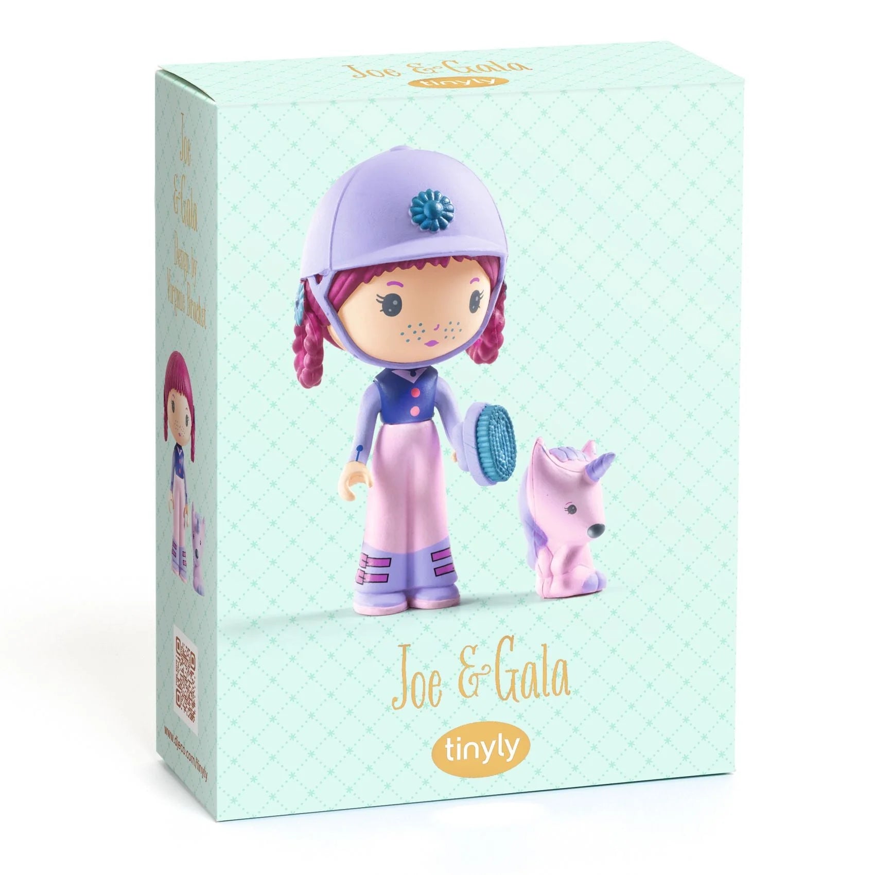 With her riding hat and brush, Joe the horse rider loves pampering her adorable little unicorn, Gala, and galloping off for fun days out. Two soft-colored creatures with delicate features from the magical world of Tinyly. Figurines for displaying, collecting, or using as characters in their very own stories and fabulous adventures!