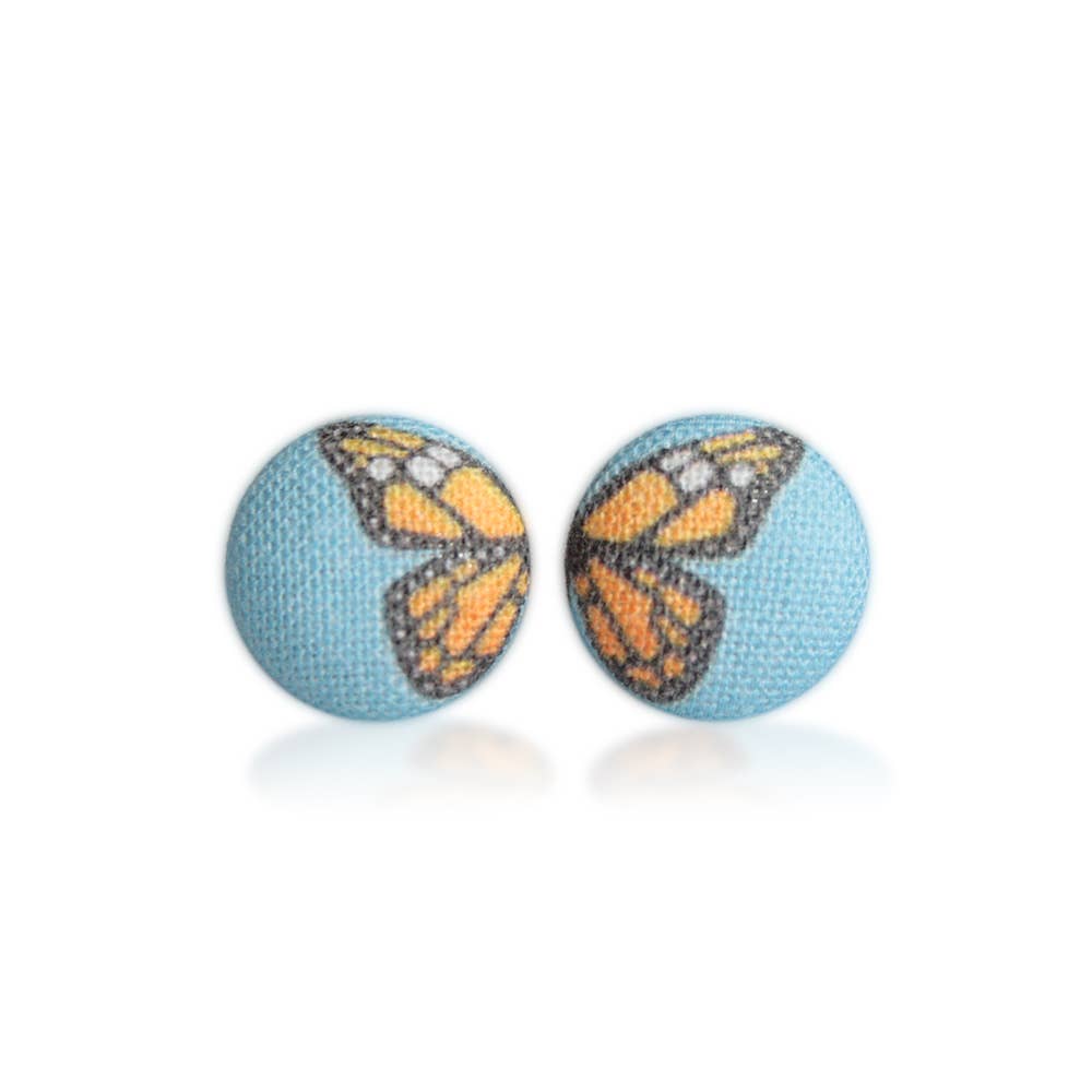 Butterfly Wings Fabric Button Earrings