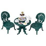 The Tea and Treats Set is a furniture set containing a garden table, chairs, and tea party accessories. The furniture is designed with detailed, gorgeous engravings.