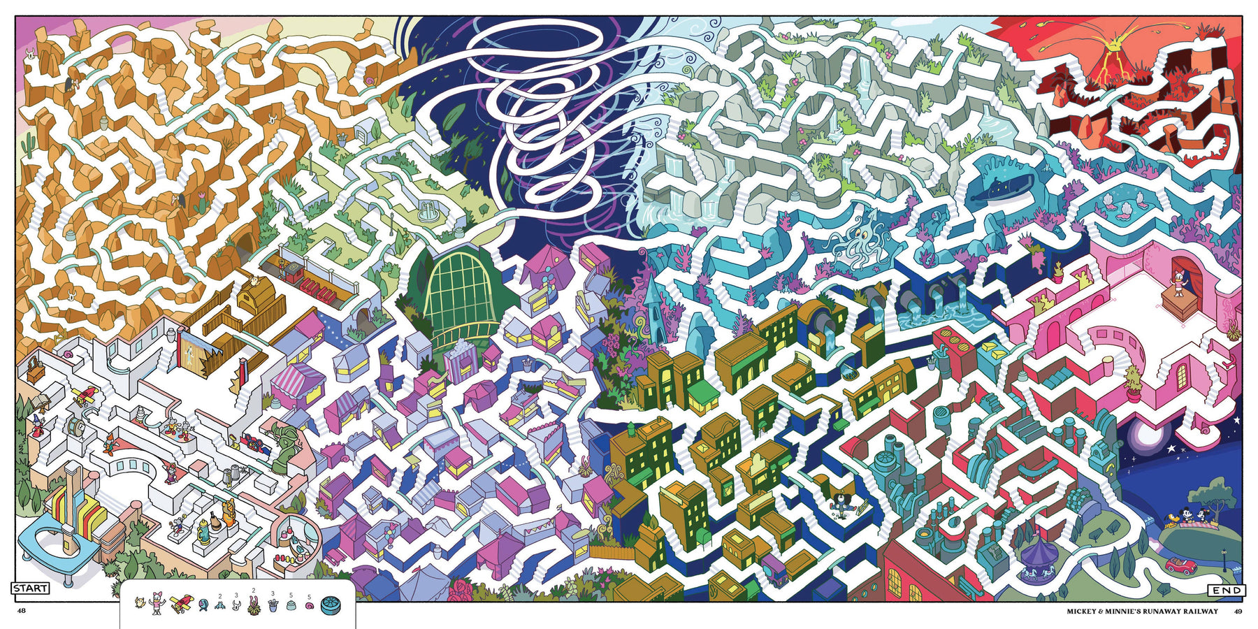 Inspired by the magic of the Disney parks, chart an imaginative course through their incredible attractions in this colorful, fun and challenging collection of all-ages mazes. Explore the Haunted Mansion, Pirates of the Caribbean, Space Mountain, 'it's a small world,' the Jungle Cruise, areas of EPCOT, and many other environments as never before. Hop on and off the monorail in search of findable elements within the maze. And much more! Featuring more than 30 mazes teeming with fun illustrated details and challenges, including international park attractions, by the expert maze creator author of Star Wars Mazes and Marvel Mazes, this all-new collection is the perfect interactive celebration of the wonderful worlds of Disney.