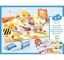 The reusable 3D vehicle stickers from Djeco are creative fun for little builders. The set contains 80 stickers and 4 illustrated boards where children can create their own scenes of a construction site.