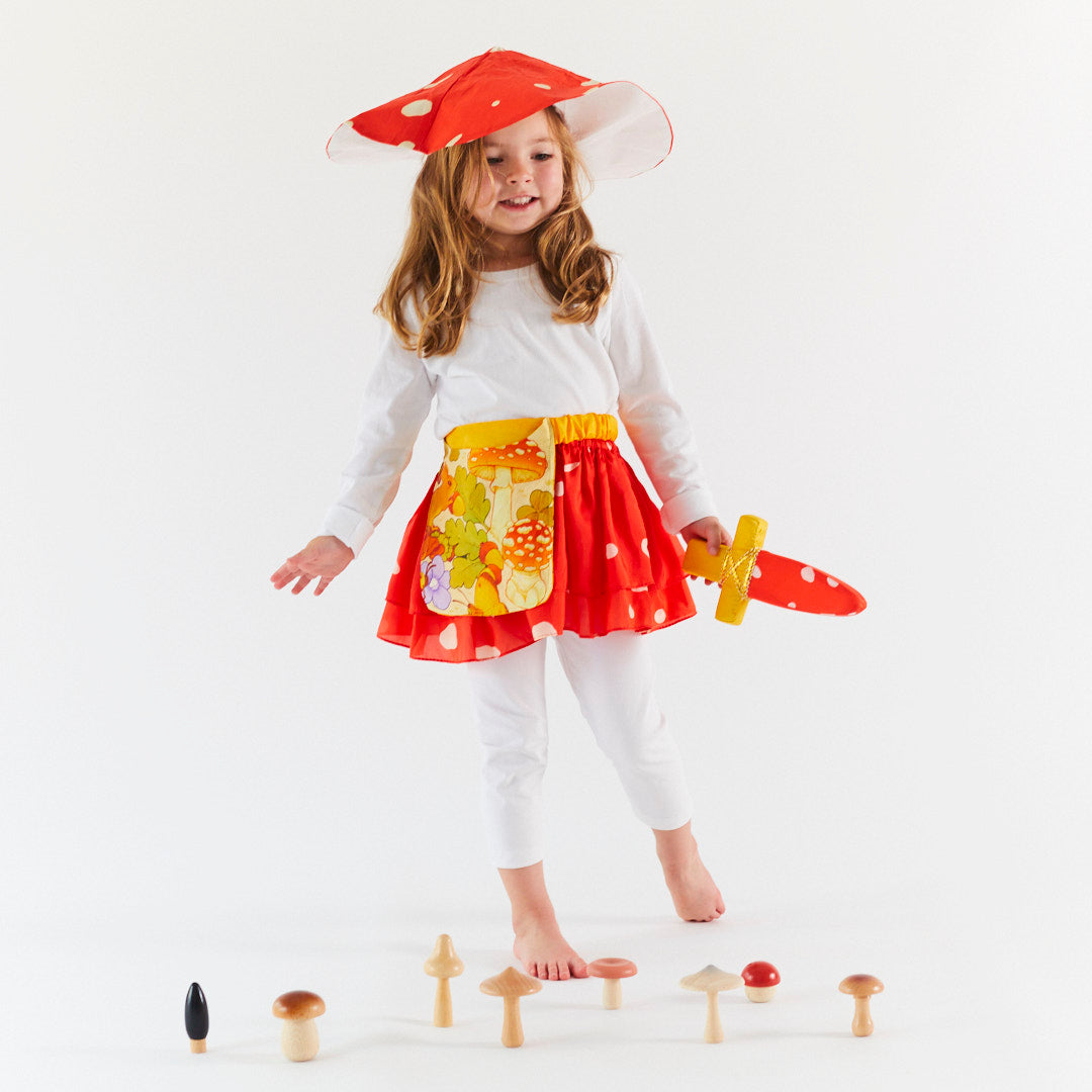 Our new Foraging Pouch is the perfect accessory to take on a nature walk or bring along your favorite trinkets! Designed from our Mushroom Seek and Find Playsilk by Leanne Fawn. Each pouch may display a different portion of the print.