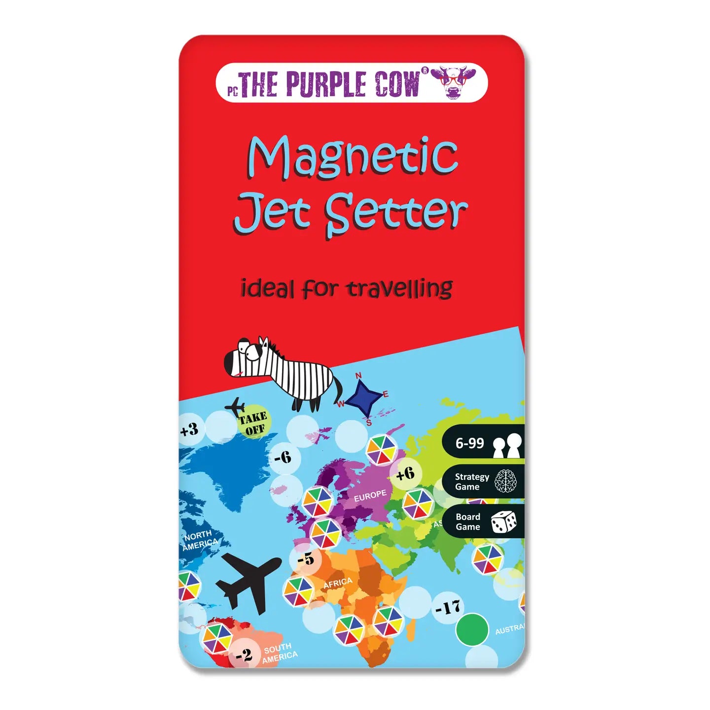 This board game is a travel size adventure in a lightweight, self-contained, pocket size box. Play the classic game of Jet Setter on the go, whether travelling in a car, plane or at home, this game is great for engaging kids and adults alike. The box contains everything you’ll need to get started on hours of fun. Forget your gadgets, game console and apps - use this board game to enjoy a "together" activity . The Purple Cow Magnetic Jet Setter board game is a mini, lightweight, travel size board game for kids and adults. Play this game with a whether you’re travelling, in the car or looking for a fun and engaging experience.