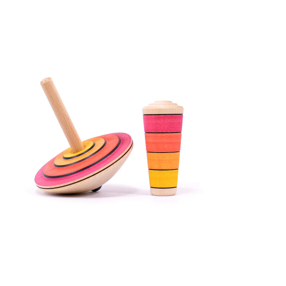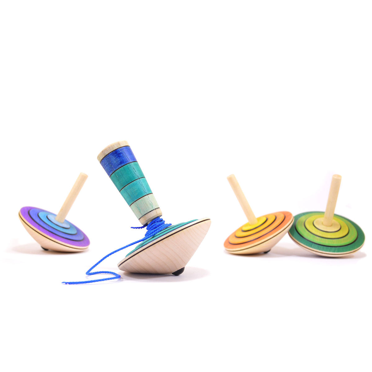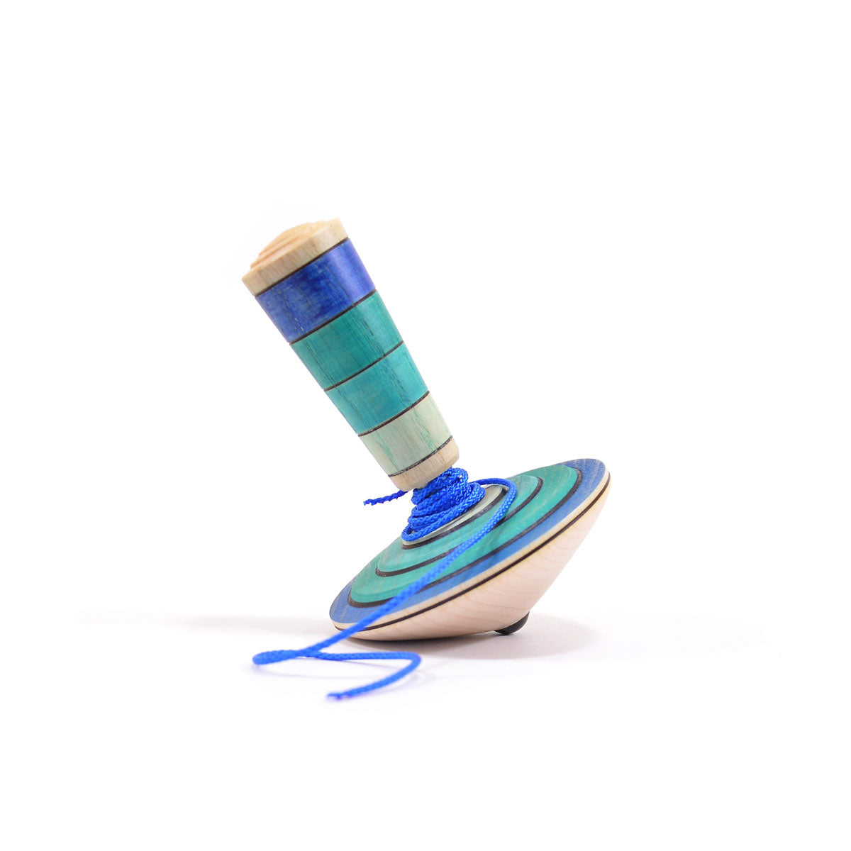A three-part string top that has a long spinning time. Comes in 6 different fun colors, and is made of maple wood. Sold individually; color selected at random.