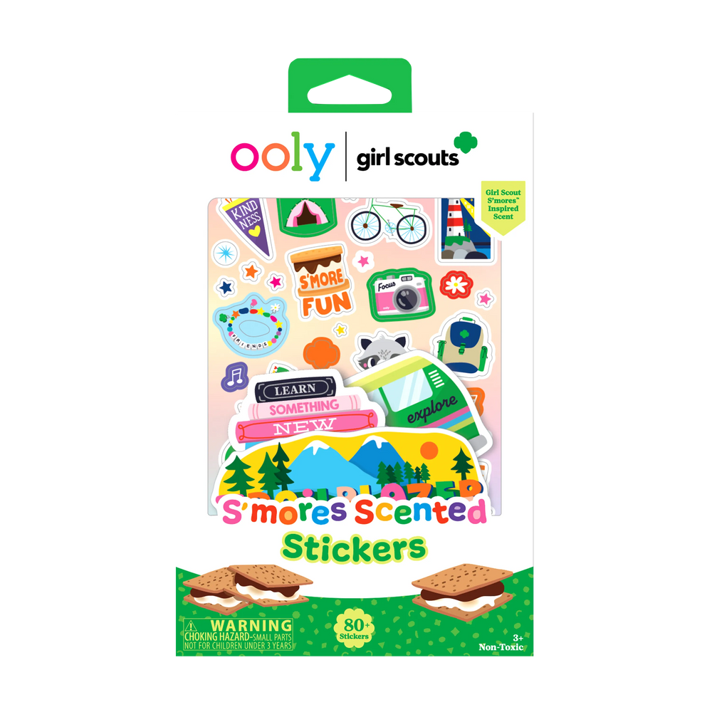 Peel, stick, scratch, and sniff your way to joy! The OOLY x Girl Scouts Scented Stickers bring the spirit of campfires, friendship, and outdoor fun right to your craft station. Featuring two full scratch-and-sniff sticker sheets of adorable designs plus six bonus die-cut stickers, this set is infused with a toasty Girl Scout S’mores™ scent—capturing the joy of finding adventure wherever you go.