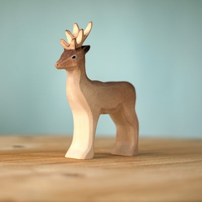Each figure is handcrafted from sustainably sourced Romanian wood and painted with safe, water-based colours that highlight the natural wood grain. The playful calves bring boundless curiosity to the scene, while the parents watch over them with warm, wise eyes. This set is perfect for Montessori-inspired play, allowing children to explore family dynamics, size differentiation, and storytelling within a snowy woodland world.