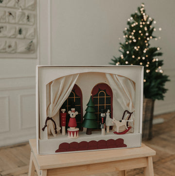 Step into a world of magic, music, and storytelling with the Sabo Concept Nutcracker Play Theater — a breathtaking heirloom set designed to bring the beloved Nutcracker tale to life. Thoughtfully handcrafted in Ukraine, this collectible set blends timeless artistry with interactive play, creating a keepsake that will be treasured for generations.
